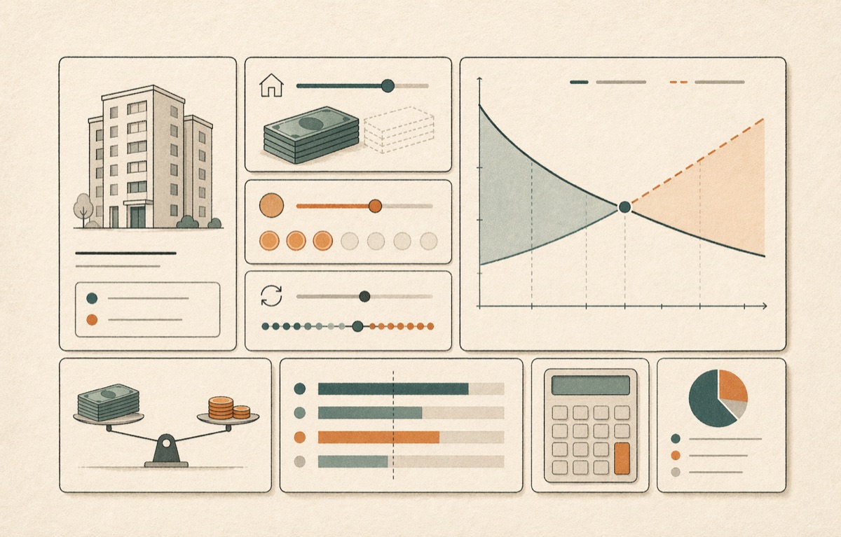 Interactive Jeonse rent calculator for exploring deposit, monthly rent, and conversion tradeoffs.
